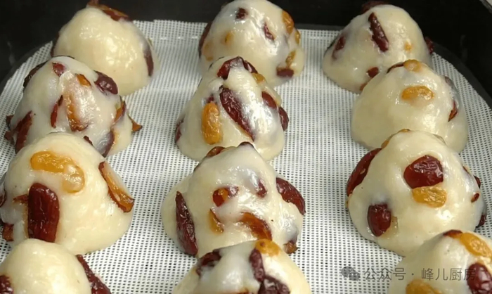 做法:1、准备好一根山药,戴上手套去皮,切成薄片,放入蒸锅蒸15分钟蒸熟。山药去皮的时候记得戴上手套避免过敏手痒。2、蒸好的山药倒入盆中,加入一勺白糖,用勺子压成细腻的山药泥,趁热分次加入大约500克的糯米粉,用筷子搅拌混合均匀,晾至温热后用手搓一搓,这样可以使山药和糯米充分融合。3、准备好一把大枣和葡萄干犯放入碗中,加入一勺面粉抓一抓,再用流水冲洗干净,面粉有很好的吸附性可以有效地带走表面的异物。大枣切成小块放入糯米团盆中充分抓拌均匀。4、取出一团做好的馅料,放到手心里捏成团,再捏成小小的窝窝头样式,冷水放入蒸锅,大火烧开后蒸20分钟。蒸好之后不要着急取出会比较粘,放凉后再取出就不会粘手了。