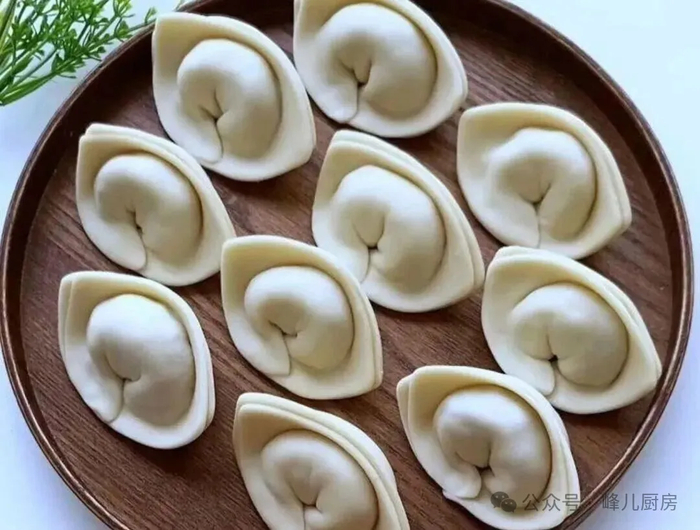 做法:1、面粉加适量水和成硬度适合的面条,醒10分钟,揉匀揪成小剂子,擀成饺子皮。2、韭菜洗净剁成碎末,猪肉剁成肉末,混合在一起,加入生抽、盐、花生油、葱花、姜末,拌匀成饺子馅。3、饺子皮中间放上馅料,这次包的是韭菜的,抓住春天的好时节,吃上一口新鲜韭菜馅饺子。4、将饺子皮对折,捏紧边缘,确保馅料不会漏出,用食指和拇指捏住饺子的两个角,轻轻向中间靠拢。在饺子的中间位置轻轻捏一下,使饺子的中间部分稍微凹陷。用食指和拇指分别捏住饺子的两个角,轻轻向上拉,使饺子的两个角形成类似元宝的双角形状。5、检查饺子的形状,确保两个角对称,中间部分凹陷明显,如果需要,可以用手指轻轻调整,使饺子更加美观。