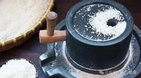 1、把糯米、粳米按照3:7的配比混合在一起,这个比例做出来的年糕不粳不糯、不粘嘴、口味好,储藏时间长,淘洗干净,除去杂质并使米充分吸足水,再自行晾干,用石磨磨成粗细均匀的米粉。
