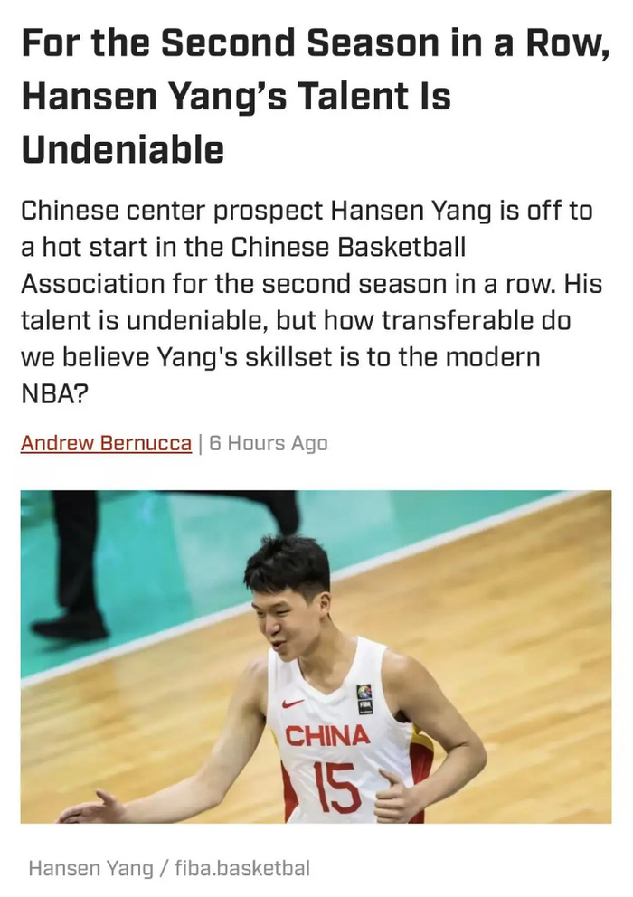 北京时间10月31日,选秀媒体Draft Digest发布长文盛赞杨瀚森——生涯第二年,他的天赋无可辩驳:他的脚步技术非常出色,利用假动作和身体晃动让对手按他的意愿移动的能力令人叹为观止。(原文太长我这里就用一句概括)
