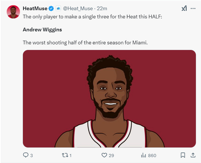 这是热火背靠背第二场,威金斯昨晚雄鹿一战末节7中2连丢关键球,全场比赛20中7+三分5中1发挥不佳,可这场比赛威金斯一反常态首节就命中三分球拿到7分,半场更是斩获13分。