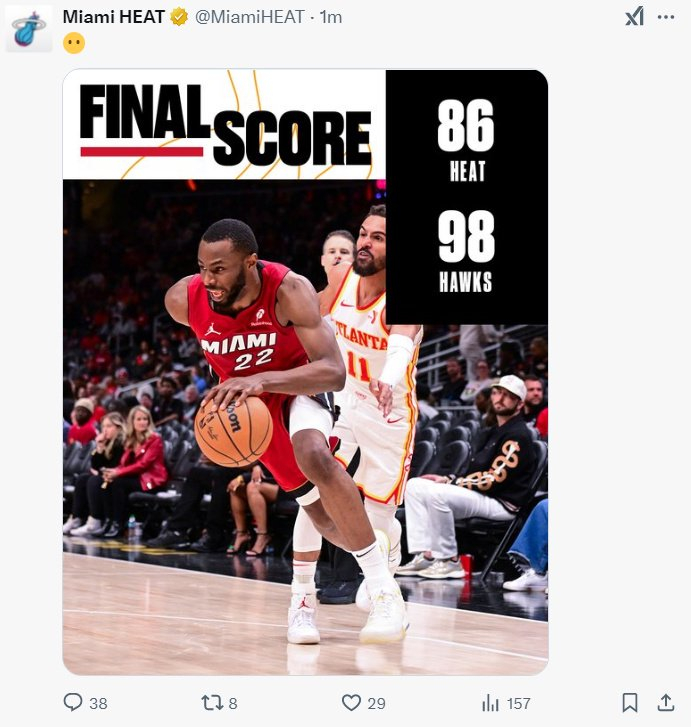 北京时间2月25日,NBA常规赛,迈阿密热火以86-98不敌亚特兰大老鹰遭遇三连败,热火掉至东部第九,老鹰升至东部第八。这也是安德鲁-威金斯加盟热火后第六场失利(1胜6负)。热火从开场就被压制,一场打铁大战热火比老鹰还铁不少,这样的比赛不仅观感差槽点更是不断,威金斯算热火唯一亮点了,但还是以输球收场。