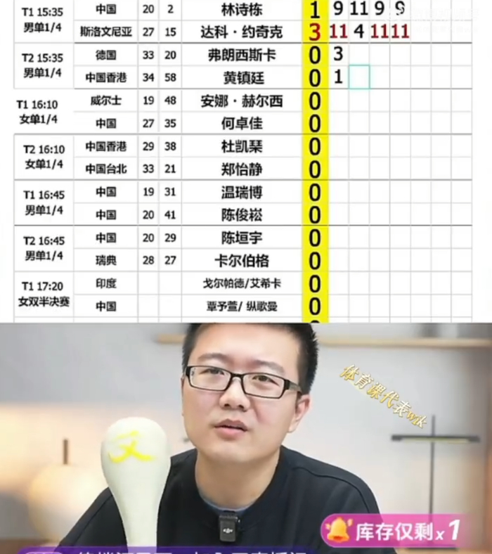 其实莱维在直播间中道出了林诗栋最大的弊病:正手保护不足,退台步伐有问题,最大的问题就是退台问题,林诗栋可能是身体状态影响了发挥,老是在关键分处理不好,他还得回去总结,开年已经连续三站连决赛都没进过。