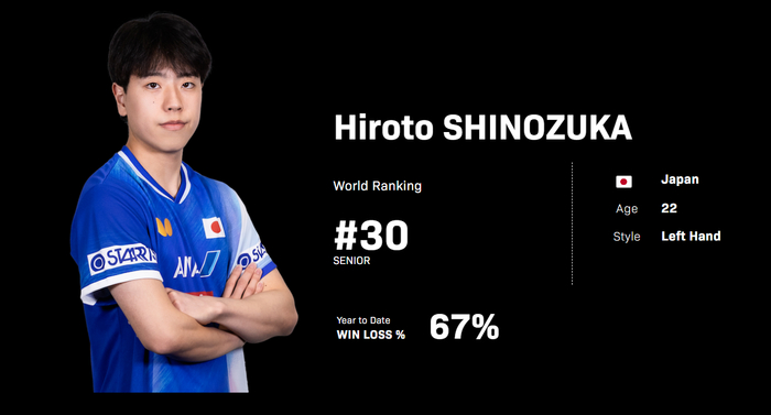 篠塚大登跟张本智和是同龄人都是22岁,两人一同在日乒一队已经多年,两人也算知根知底,篠塚大登世界排名第30,在全日本锦标赛中他拿到男单亚军,但在WTT多哈球星挑战赛他不敌周启豪止步16强。