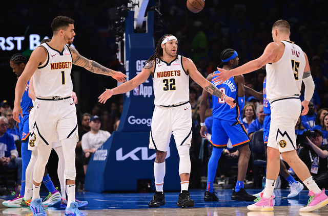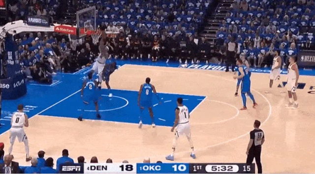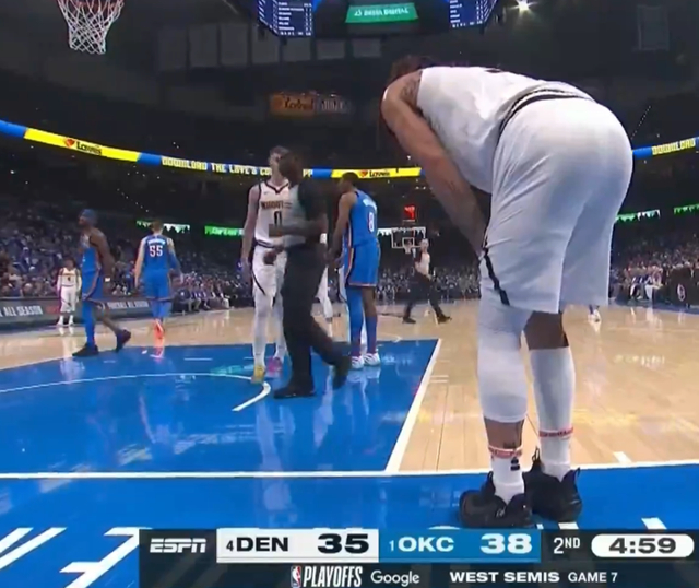 首节还剩5分32秒戈登接约基奇的空接传球完成2+1,他落地后有一个一瘸一拐的瞬间但没有申请下场。