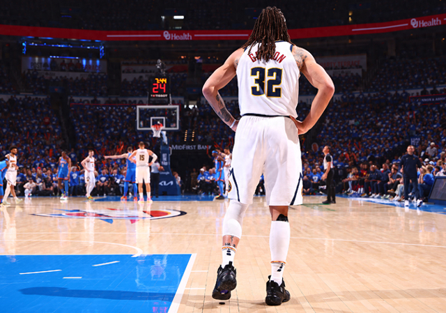 掘金抢七还是不敌雷霆,最终掘金止步西部半决赛,可无论胜负阿龙-戈登都是一个英雄的角色。他是带着左腿筋二级拉伤的严重伤病坚持登场,戈登每一次的篮板、冲框落地都有些踉跄,可他就是忍痛坚持,最终打了24分30秒被换下场。