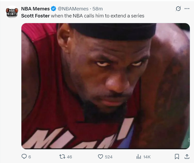 美媒NBA Memes:当福斯特接收指令要延长系列赛时他就 开启死亡之瞳。