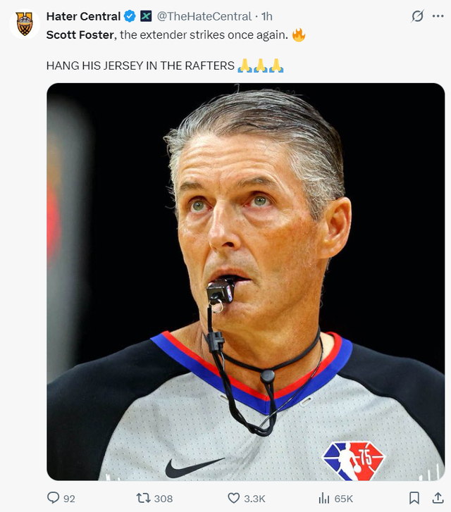 赛后这场比赛的主裁判斯科特-福斯特登上了全美第二热搜,因为在官宣他要吹罚G4后步行者球迷就觉得这场比赛要输球。