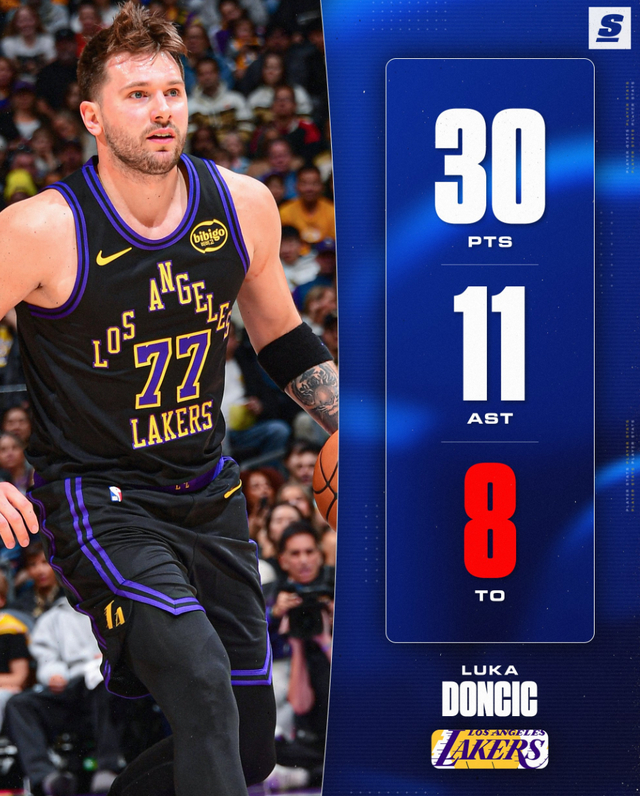 下半场东契奇的失误还是没有控制住,第三节2个失误,第四节开场2个失误,整个下半场他也是4个失误,换言之全场比赛他贡献了8次失误,末节的3中0+2失误更是致命的,湖人被一波流给带走了,东契奇末节更是0分2失误令人绝望。