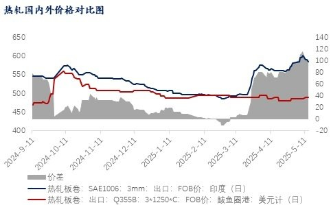 从6月份的情况看,消费韧性或将逐步下移,表需震荡结构也会有所体现。政策托底预期依然存在,但海外价格制约依然维持,这对于价格则会出现上行难,现实端矛盾累积的速度快慢,最终才能影响到市场绝对价格,因此6月初矛盾或将出现,价格前高后低预期体现明显。当前风险在于,“抢出口”消费预期差影响市场情绪,其次价格回升后,国内外供需结构呈现内流增加国内供需压力。需要注意的点在于:1、钢厂未来接单压力是否上升;2、海外反倾销,对于直接出口是否会出现预期下降;3、盘面基差修复,国内外价格对比优势下降,高产对应季节性是否会体现。从以上3点看,对于6月份整个市场风险大于市场机会,供需矛盾难以体现,那最好的结果或将是震荡。要出现快速回升行情,那需要形成一轮新的供需平衡调节,即产量下滑,所带来的预期错配,这一概率并不大。