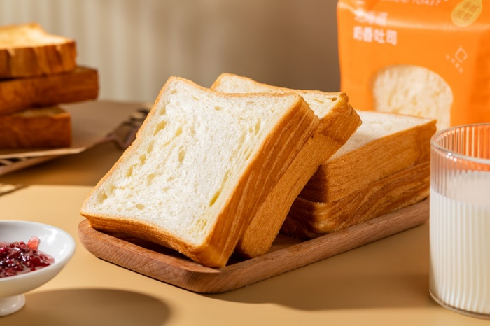保萝工坊开发商品的基础逻辑之一,就是采用高品质原料,最大限度地减糖减脂,要好吃,还要还原自然的口感和风味。比如,对于吐司、小蛋糕等基础商品,保萝工坊往往会选用高品质的动物黄油/乳脂奶油、鲜牛奶、进口奶粉、鲜制奶酪等原材料,目前其热卖的北海道奶香吐司,就是在普通配方的基础上,升级采用了朝日唯品自营牧场的牛奶和进口动物黄油,加上二次发酵技术,避免了高糖假甜、香精味,还做到了拥有浓郁奶香的口感和柔韧绵密的形态。