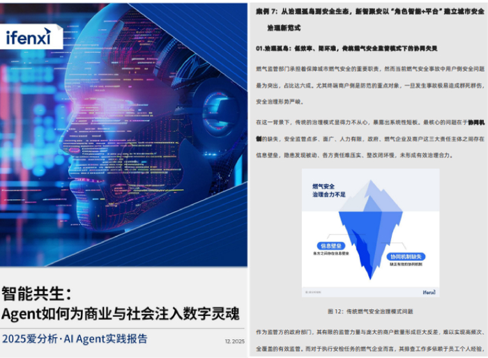 依托平台沉淀,新智聚安将安全治理从成本中心转化为增强城市韧性的核心竞争力,构建了独特的产智共创、能力共建模式,打造了行业领先的“安全大模型”和“城市安全能力库”,实现Agent能力创新涌现。在《某市燃气监管部门安全监管治理实践案例》中,报告重点展示了新智聚安如何通过角色智能与多主体协同机制,系统性地重构该市商户燃气安全治理模式。该实践有效连接政府、企业、商户与公众四方,构建起“产业为核、数智赋能、多方共益”的全新协同体系,实现了从传统被动响应的管理模式到主动预防、协同共治的根本性转变。