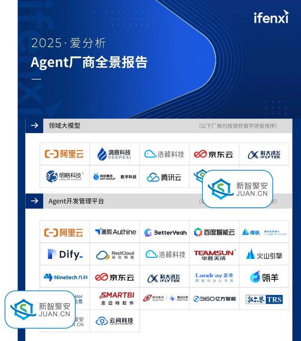 近日,国内权威研究机构爱分析正式发布《2025爱分析・Agent厂商全景报告》和《2025 爱分析・AI Agent实践报告》,新智认知旗下品牌新智聚安凭借在安全智能化领域的领先布局与卓越实践,入选“AI Agent领域大模型代表厂商”“AI Agent开发管理平台”及“AI Agent典型实践案例”,成为同时覆盖“产业大模型+AIAgent能力”双赛道的标杆平台厂商。