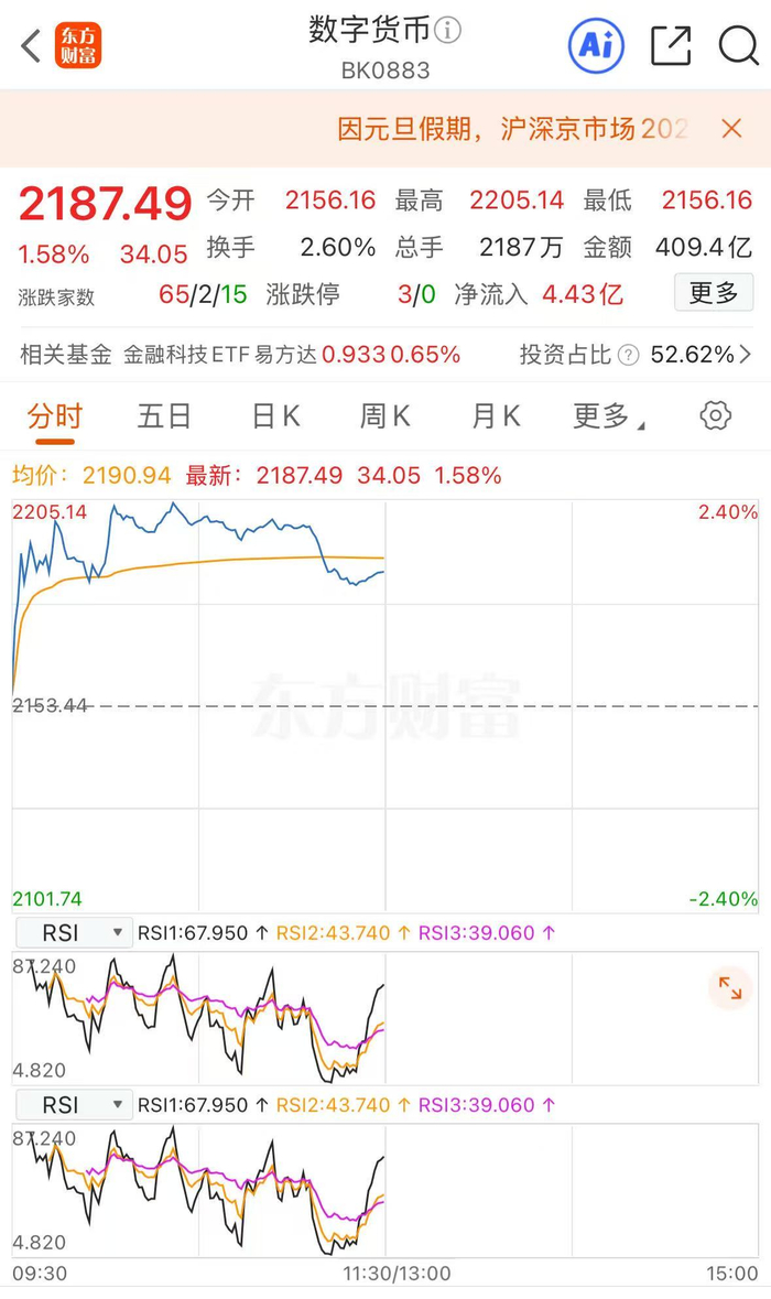 具体来看,东方财富数据显示,概念板块中数字货币、移动支付、电子身份证、生物识别、Web3.0、财税数字化等多个板块集体大涨。截至中午收盘,个股中翠微股份涨停,斩获“2天2板”;此外,数字认证涨超17%、飞天诚信、拉卡拉、新大陆、京北方、中科金财、楚天龙等多只个股跟涨。
