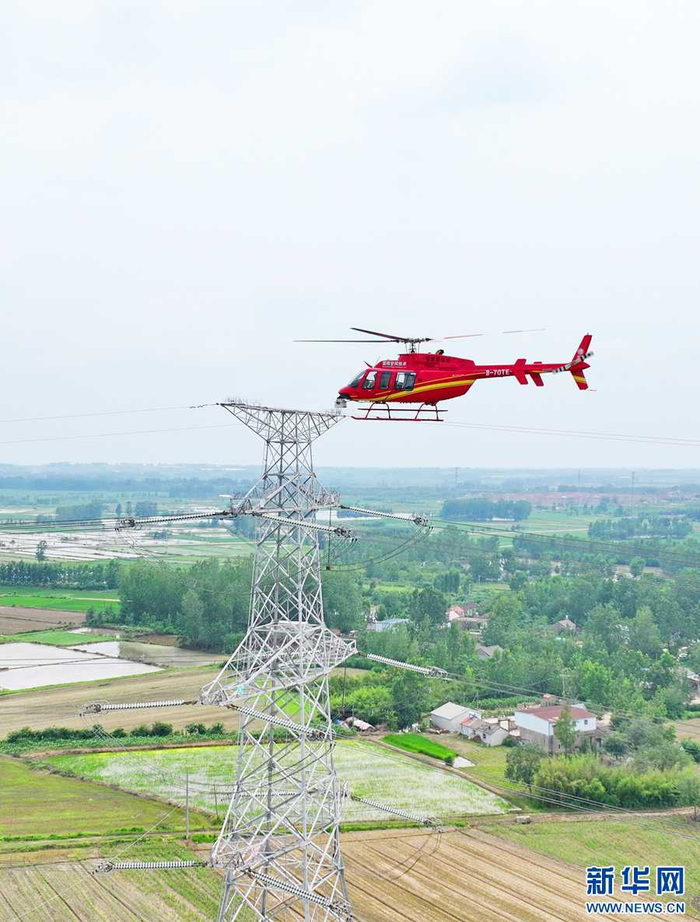 为确保“皖电东送”至长三角地区的特高压电力大动脉安全稳定运行和“迎峰度夏”期间城乡工农业生产生活可靠用电,安徽省滁州市供电公司联合国网空间技术有限公司通过直升机对超高压输电线路进行精细化巡检,弥补地面巡线视觉盲点,及时消缺维护,保障华东电网夏季高峰供电安全。新华网发(宋卫星 摄)