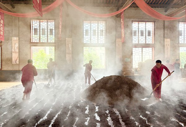 酿酒工人正在进行摊晾 仁怀市白酒产业科学技术服务队整合业内知名专家和省酒检院、茅台学院专家及白酒产业专业技术人员57人,常态化深入酒企,围绕制酒制曲、酒体设计、品质检测、新品研发、知识产权、创新管理及人才培训等领域进行精准服务,助力酒企高质量发展。
