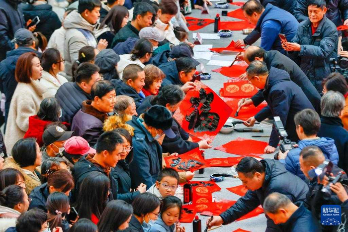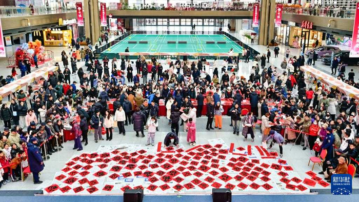 春节临近,年味渐浓。各地举办年货大集、写福字春联等活动,人们选购鲜花、中国结等饰物,迎接新春。