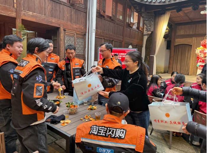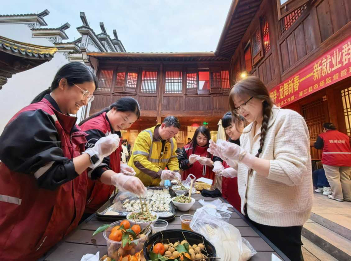 新春将至,满城都洋溢着辞旧迎新的温馨气息。为致敬城市美好生活的守护者,让新就业形态劳动者感受浦江这座城市的温暖与关怀,浙江省金华市浦江县委社会工作部联合县市监局、县总工会、片区开发建设指挥部,在充满历史底蕴的东街举办“暖‘新’相伴・龙舞新春”新就业群体年夜饭暨浦江板凳龙非遗体验活动。骑手、小哥齐聚一堂,品年味、赏非遗、迎新春,在欢声笑语中感受“家”温暖。