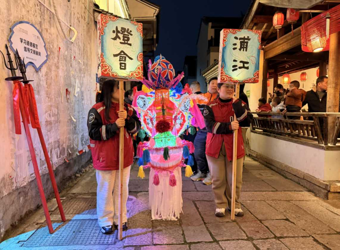 非遗龙舞,焕彩新春。作为活动重头戏,骑手小哥沉浸式体验国家级非遗浦江板凳龙的魅力。这项始于唐代、盛于明清的民俗文化,集多种传统艺术与工艺于一体,是地道的百姓文化。