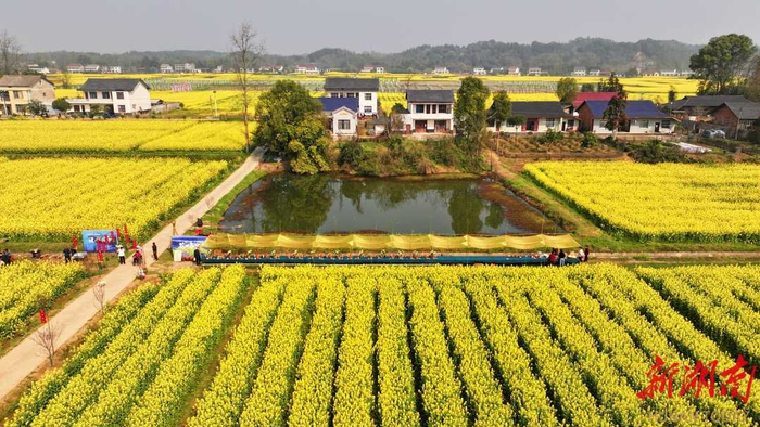 一场踏青大会,铺展春日浪漫。油菜花漫成金色花海,风过花穗轻摇,阳光镀上金边,清甜花香混着泥土与江水的清冽,是大自然最纯粹的馈赠。踏花而行,沅洲村集烟火氤氲,鲜蔬、干菜、腊货、甘蔗等,藏着淳朴热忱。