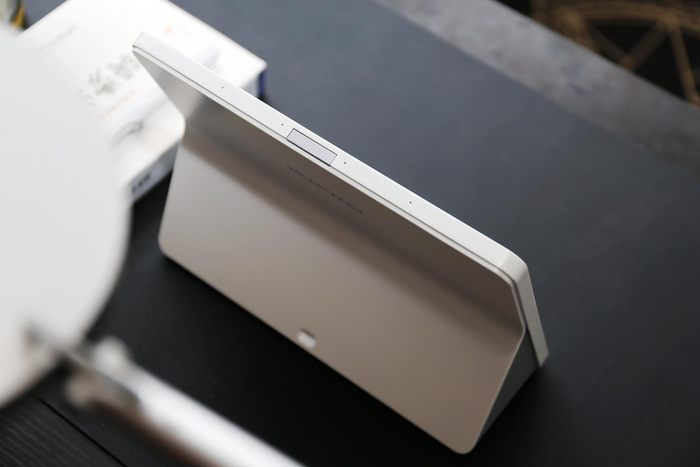 在正面是一块10.4寸的IPS触摸屏,边框为8.7mm窄边框,分辨率为2000*1200,支持1670万色,PPI为225通过莱茵低蓝光、无频闪认证的2K高清护眼显示屏,在右上册还设计有一枚800万像素 f/2.0光圈的摄像头,主要作用用来视频交互。