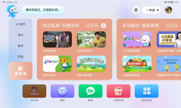 在几天的体验下来,因为资源太过于丰富,说实话华为小精灵学习智慧屏的全部功能并没有完全体验出来,涵盖的学生年龄段也很广,一年级孩子每天都能学得很充实;家长们也放心。