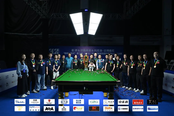 2025年台球界最后一冠产生!星牌&劲霸男装&托尼洛·兰博基尼“超级视觉杯”第三届(2025)俱乐部斯诺克团体智能让分总决赛12月31日晚结束,广州欧莱克队5-3力克深圳新豪队,夺得冠军!广州永顺和上海WHY球友荟并列获得季军。
