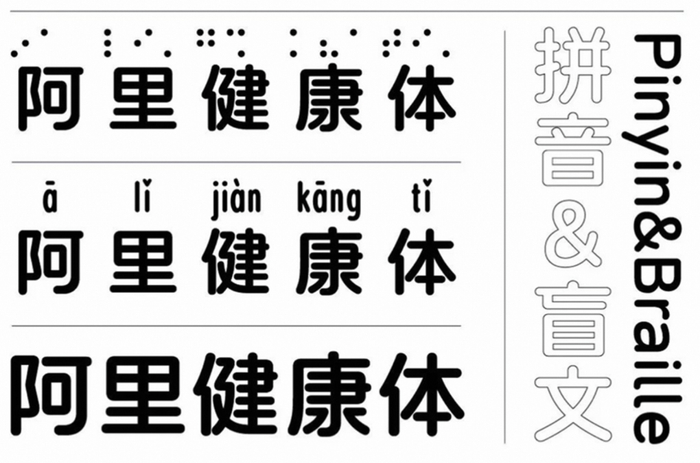 阿里设计师设计出一款盲文字体,并推出首套「中文+盲文+注音」字库;为帮助乡村中小商家解决可能面临的商用字体侵权问题,阿里设计师推出「阿里汉仪顺利热土体」,以公益价格开放给社会商用。