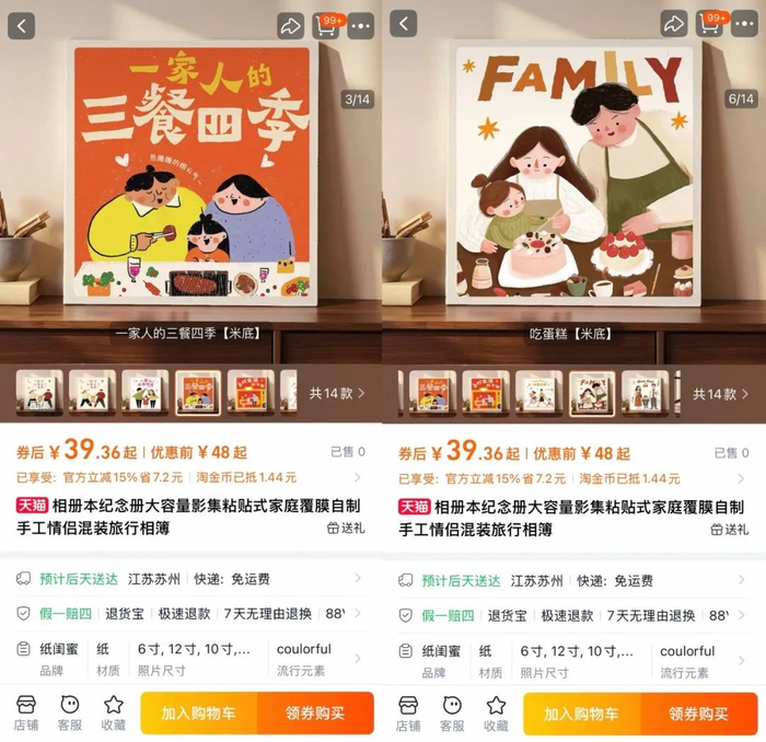 最近,这7款亲子相册已经在陆鸿的天猫店铺「纸闺蜜旗舰店」上架。