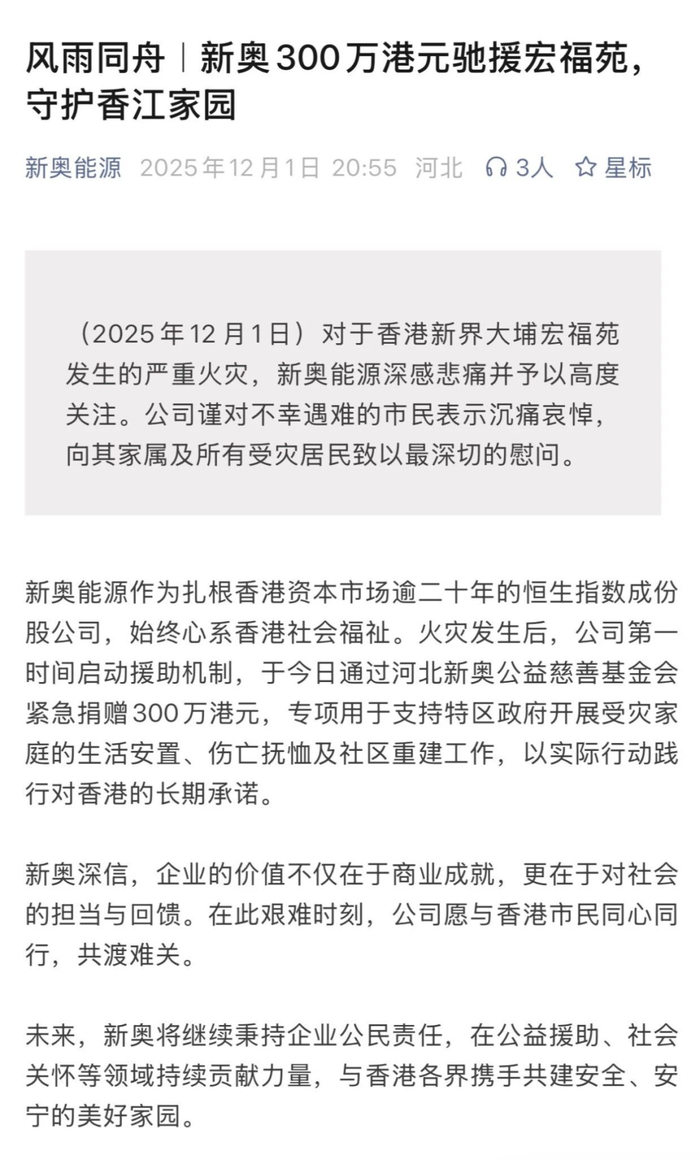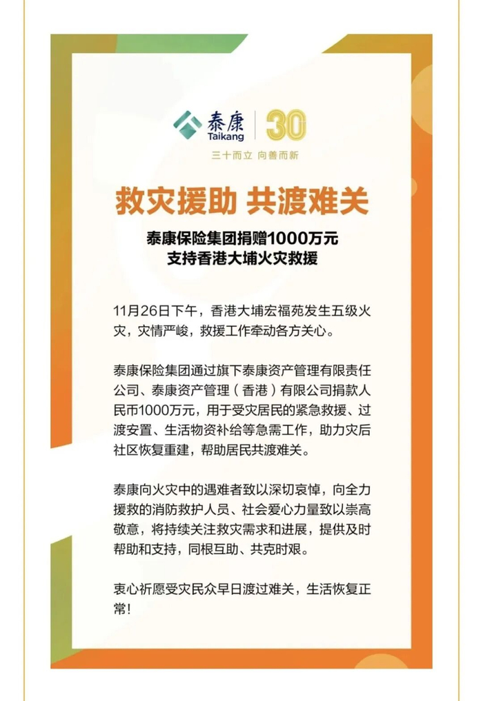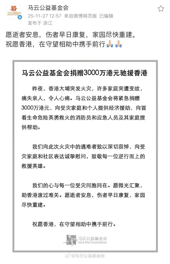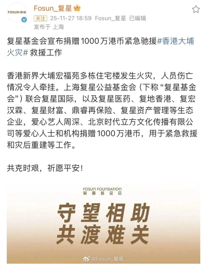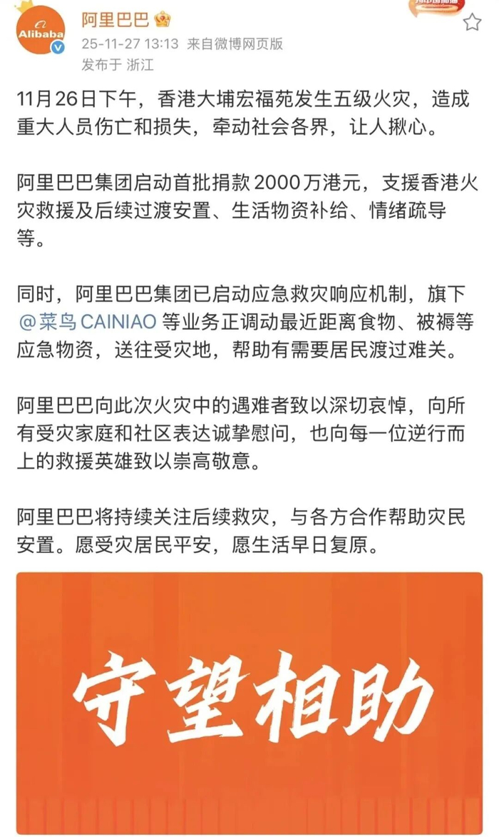 11月26日,中国香港大埔宏福苑突发重大火灾,造成重大人员伤亡与财产损失,灾情牵动人心。