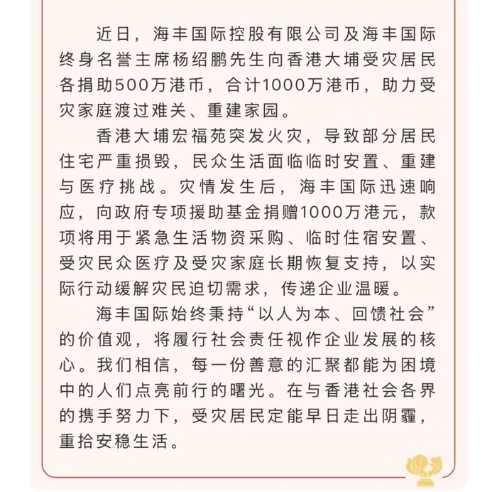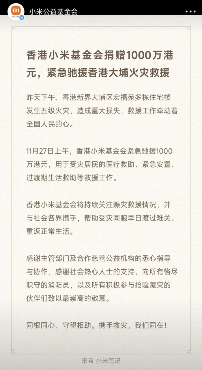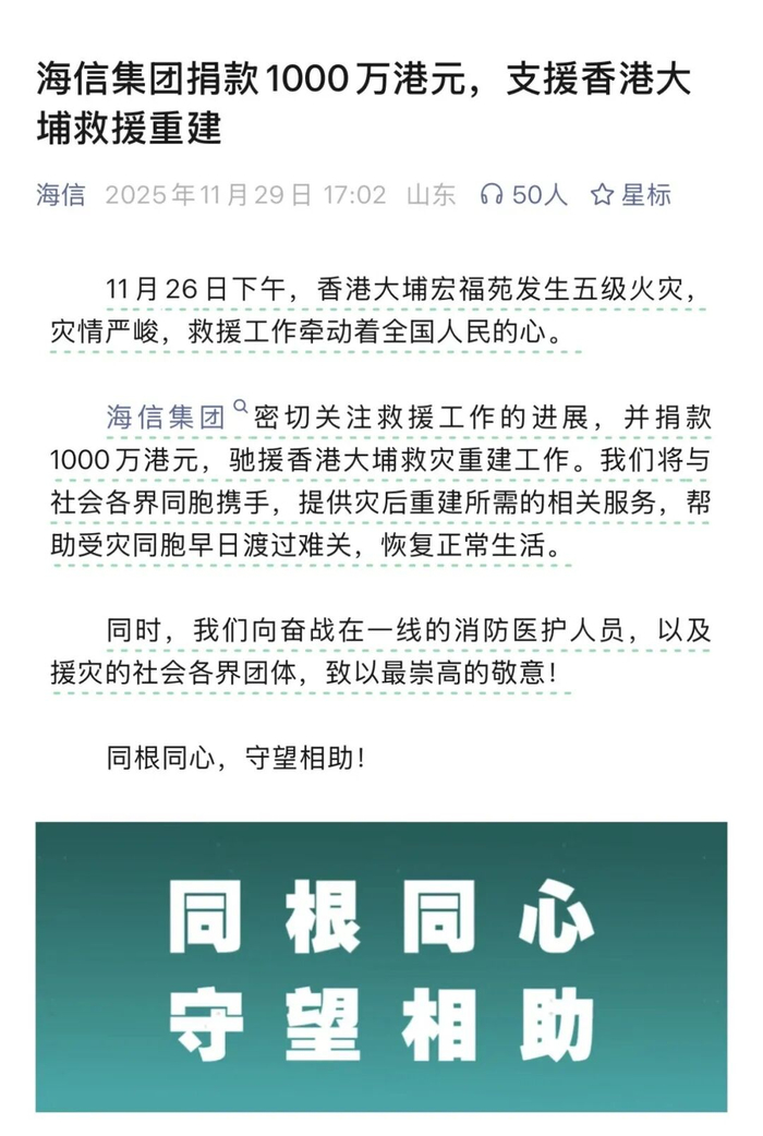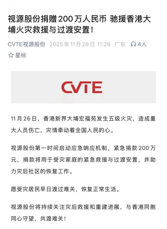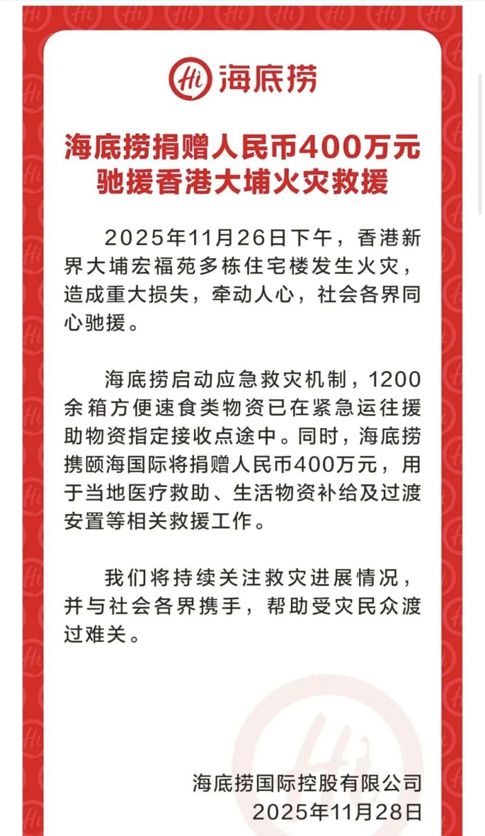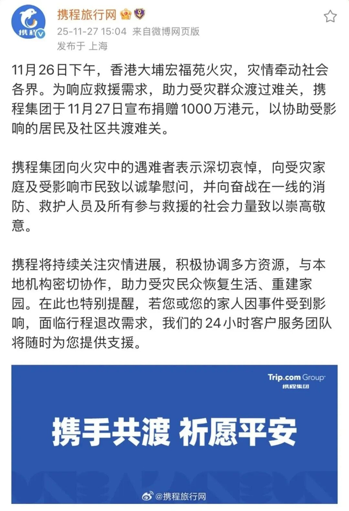 11月26日,中国香港大埔宏福苑突发重大火灾,造成重大人员伤亡与财产损失,灾情牵动人心。