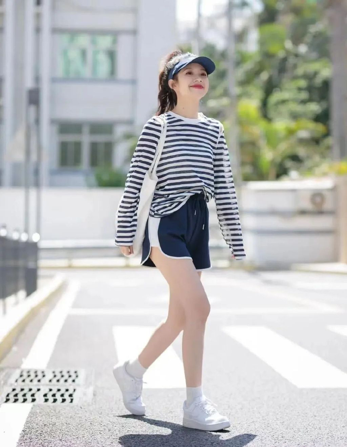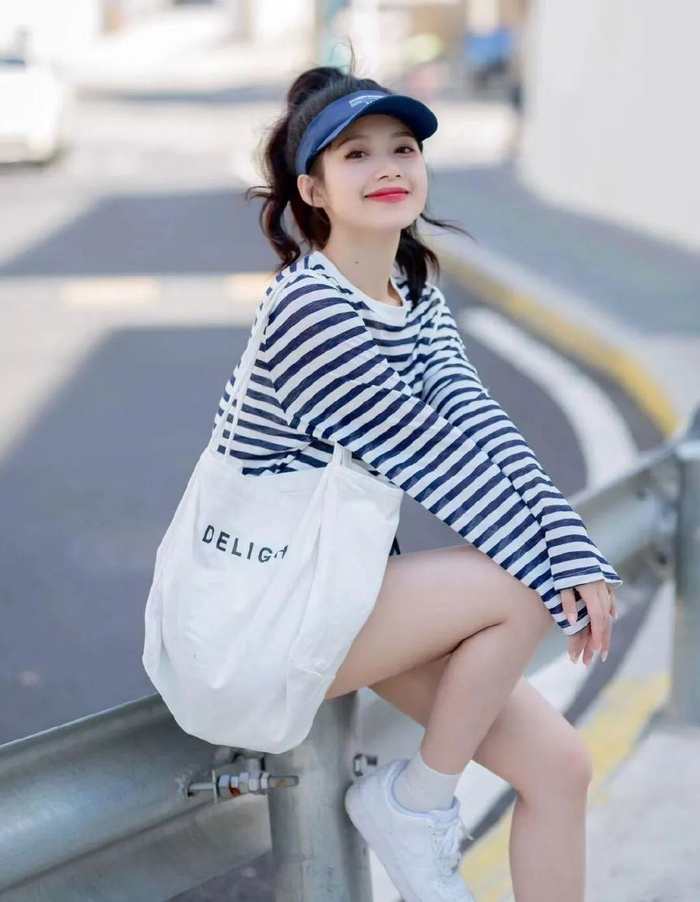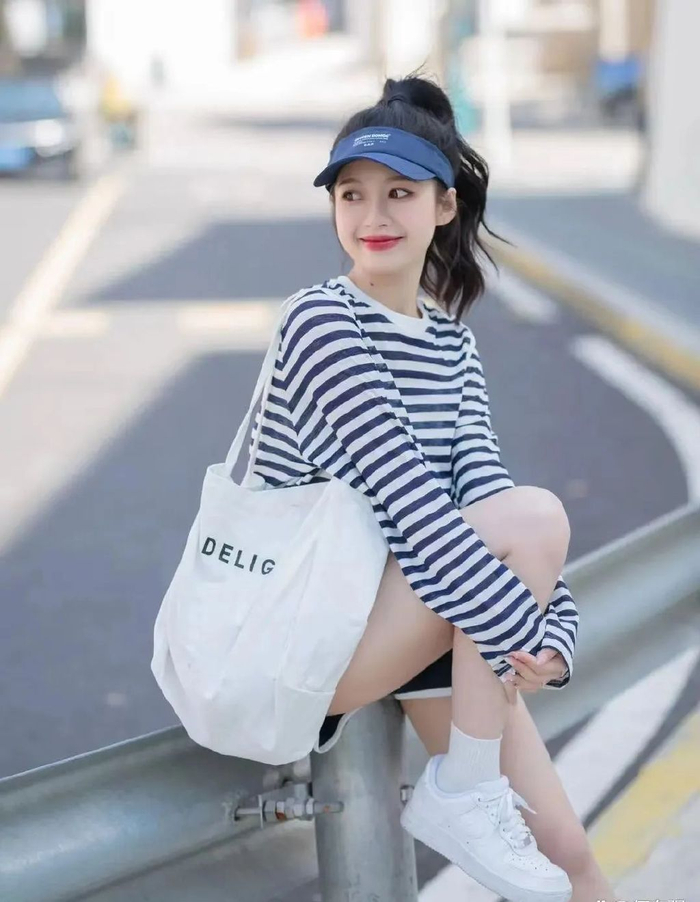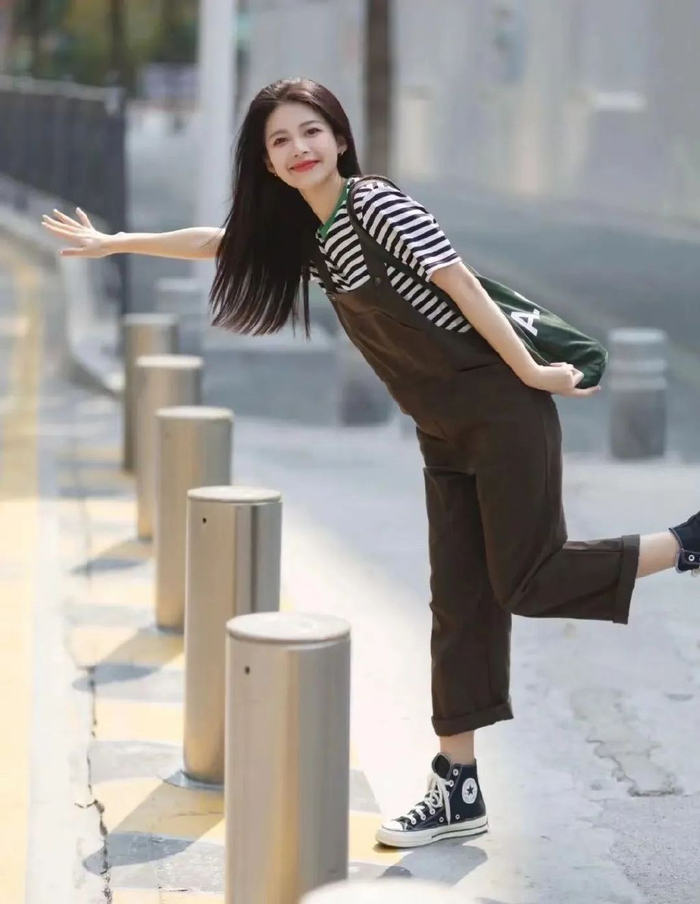 街拍就要释放自己的天性,除了手部的姿势要有,还能搭配上腿部的一些姿势,比如像迈腿或者向镜头踢腿互动都可以,不单板的同时也能增添几分活力和俏皮可爱的感觉。