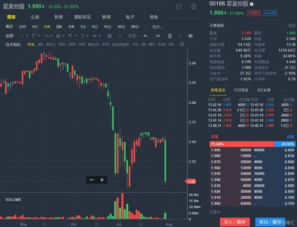▲闪崩的星美控股股价