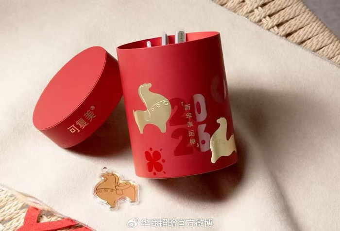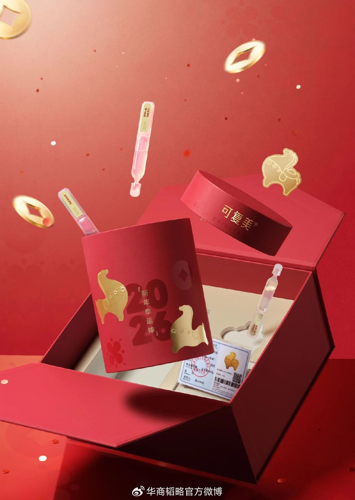 这个融合了祝福、关怀、功能和价值的组合,就是可复美联合珠宝品牌潮宏基,在2026年共同推出的“可复美×潮宏基定制黄金新年礼盒”。