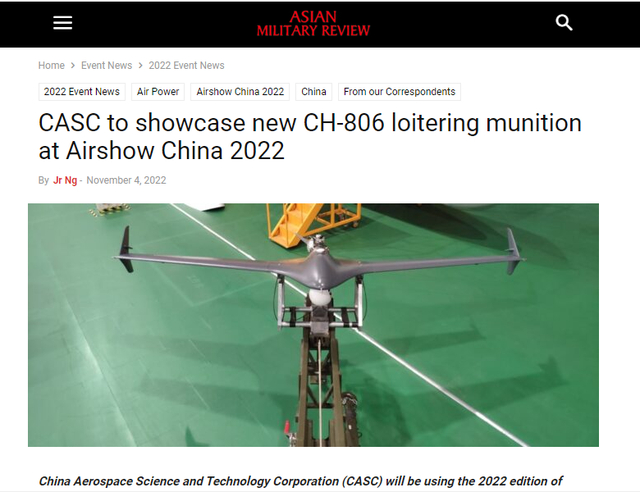 图片:《亚洲军事评论》网站对于CH-806无人机改装巡飞弹的报道。