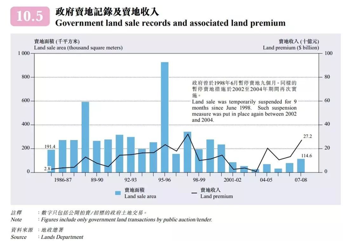 而当时,除了置业者与开发商需要博弈外,政府的土地政策也为香港此后的楼价高企埋下了深深的隐患。因为香港的土地买卖几乎有政府控制,市道低迷时,香港政府做了和中国证监会一样的选择,停止卖地(IPO)。比如1998年7月到1999年3月这九个月中,政府暂停卖地;即使有开发商申请土地时候,政府也会把底价提高(这样就卖不出去了)。