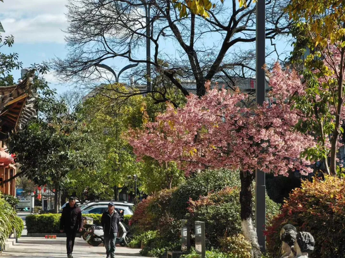 有人说,丽江的冬樱,是“长在生活里的春”,不用特意去景区,上班路上一抬眼,是满树的粉;买菜拐个弯,是飘着的花瓣;甚至去取快递的路上,都能撞进某棵树的花影里——这是独属于丽江的浪漫,把冬天的寻常日子,酿成了春日的甜。(采写/曹玉庚)