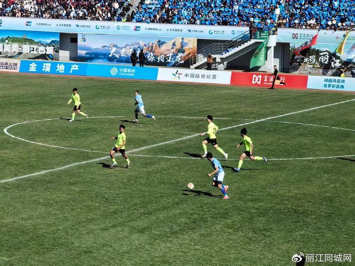 比赛当日,体育场内人山人海,座无虚席。来自丽江和曲靖的球迷将看台染成了两片沸腾的海洋,激昂的呐喊声与助威声此起彼伏,现场气氛火爆异常。这场积分榜上同分球队的直接较量,关乎榜首格局,吸引了全省球迷的目光。