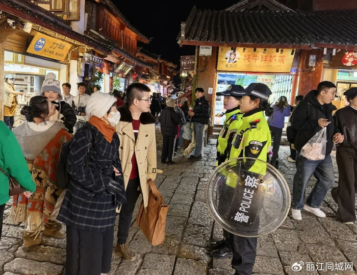 守护是温情的底色,更是女子巡逻队的核心使命。立足丽江古城旅游发展规律,队员们精准聚焦东大街、七一街、木府等游客密集的核心区域,构建“定点值守+动态巡逻”的常态化防控模式,用脚步丈量古城街巷,织密织牢社会治安防护网。据悉,女子巡逻队由民警与辅警共同组成,经专业警务技能与旅游服务培训,熟知古城街巷布局与服务点位,练就了“活地图”本领,通过科学划分巡逻线路、优化巡防频次,实现核心区域防控全覆盖,让游客随时见警察、见警灯,切实增强出行安全感,这也是“五心”警务中“暖心”理念的生动实践。