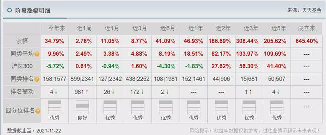 从阶段涨幅来看,广发制造业精选混合今年来实现涨幅34.79%,同类排名158|1577;近3年实现涨幅308.44%,同类排名15|681;近5年实现涨幅205.62%,同类排名50|507。