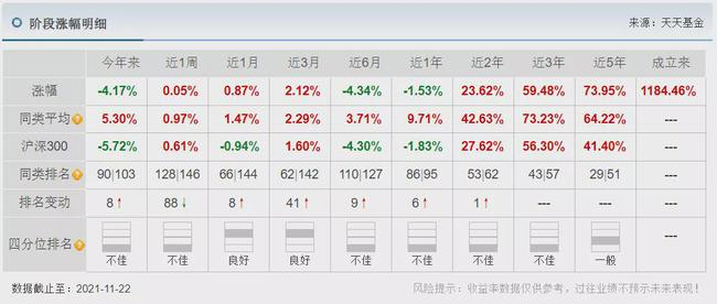 从阶段涨幅来看,广发多策略混合今年来实现涨幅24.80%,同类排名245|1948;近3年实现涨幅100.46%,同类排名692|1700;近5年实现涨幅82.73%,同类排名473|1093。