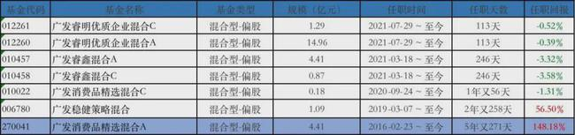 广发消费品精选混合是其代表作,任职时间为2016年2月23日至今,任职天数为5年又271天,任职回报为148.18%。
