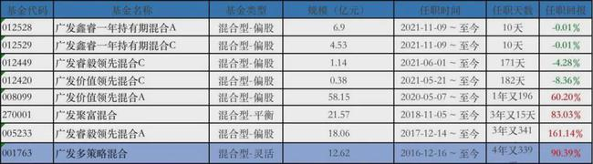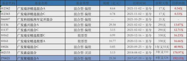 广发聚瑞混合是其代表作,任职时间为2017年7月19日至今,任职天数为4年又124天,任职回报为192.15%。