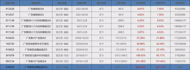 广发制造业精选混合是其代表作,任职时间2011年9月20日至今,任职天数为10年又67天,任职回报为645.40%。
