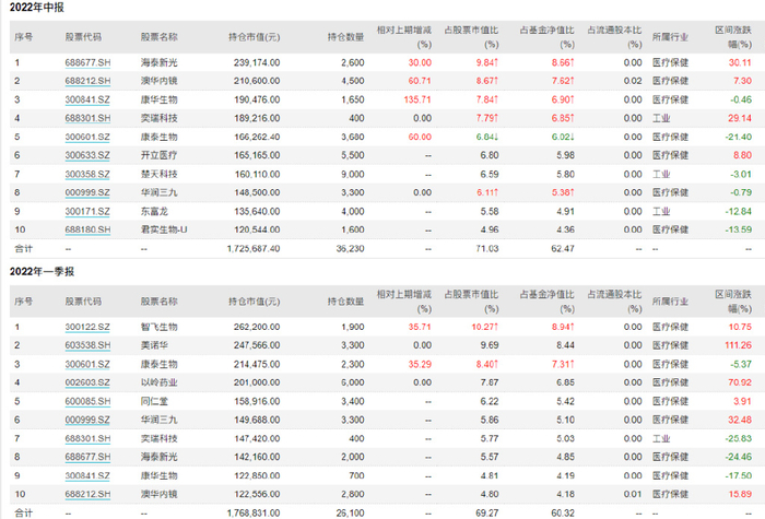 时间来到2022年,中航新起航1季度和2季度抄底买入医药股,其中还包括生产新冠神药连花清瘟的以岭药业,3季度和4季度则重点配置光伏行业。