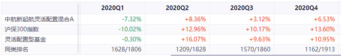 2020年1季度金融股大幅下跌,中航新起航开始调仓换股,2季度切换至医药和TMT。