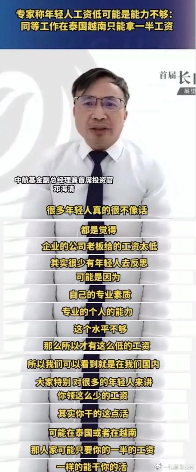 “和泰国越南比工资,你怎么不跟美国比呢?你怎么不拿咱们的物价房价和泰国越南比比呢?”