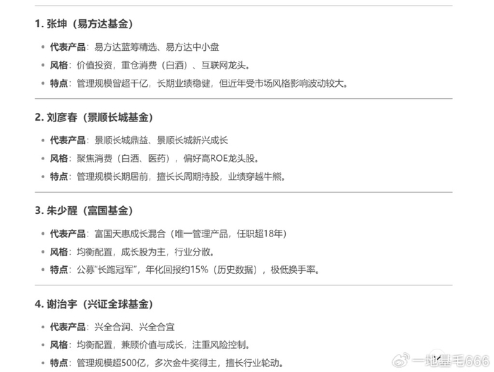 豆包给出的答案与其他几家ai不太一样,它给出的更多是中生代基金经理。