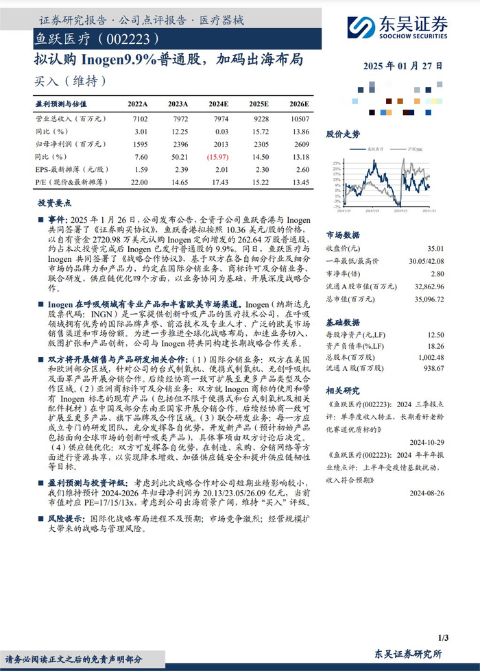 答:您好,公司作为中国家用医疗器械领先企业,拥有丰富的产品矩阵、规模化生产实力、亚洲成熟且多层次的营销网络,可以为Inogen亚洲业务拓展、降本增效、产品组合扩展与创新等方面提供战略性资源,以促进Inogen产品线的多元化发展与业绩的持续成长。根据业务合作协议,双方就Inogen商标的使用和带有Inogen标志的现有产品(包括但不限于便携式和台式制氧机及相关配件耗材)在中国及部分东南亚国家开展分销合作,后续经协商一致可扩展至更多产品、旗下品牌及合作区域。鱼跃制氧机在中国连续多年市占率保持领先,具有线上线下广泛渠道和品牌知名度,公司近年来加速开拓东南亚市场,以泰国子公司辐射整个东南亚。目前Inogen的海外业务收入主要来源于欧洲和南美,公司现有营销网络将赋能Inogen,扩大其品牌和产品于亚洲区域的覆盖,谢谢。