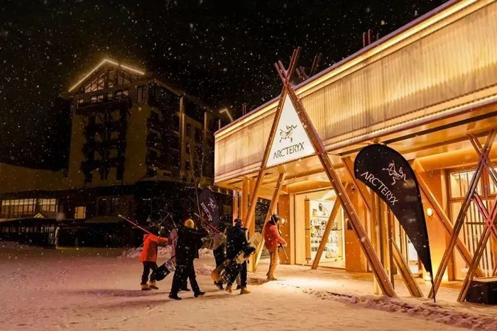 图片来源:始祖鸟始祖鸟山地课堂落地北大湖,只是这个雪季,奢华品牌集体抢滩吉林滑雪场的冰山一角。跟始祖鸟山地课堂一同落地的,还有日本顶级温泉品牌极乐汤旗下的百万石五星级豪华温泉度假酒店。在北大湖新建成的综合商业街区,今年吸引了美国高端滑雪板品牌THE WHIP、美国单板滑雪品牌BURTON等。